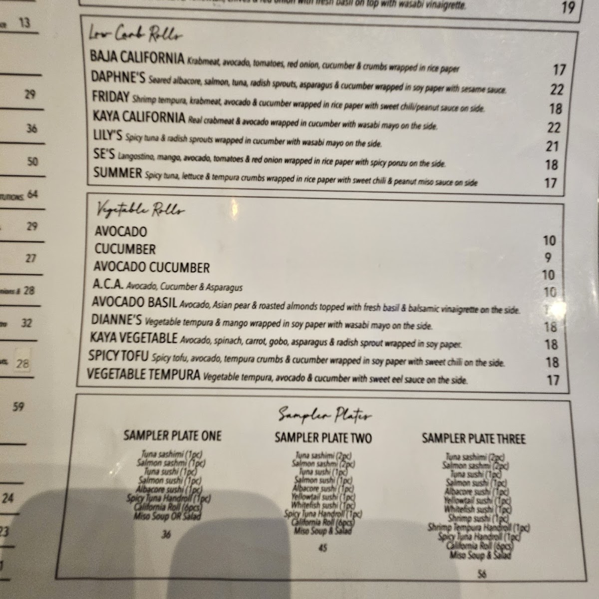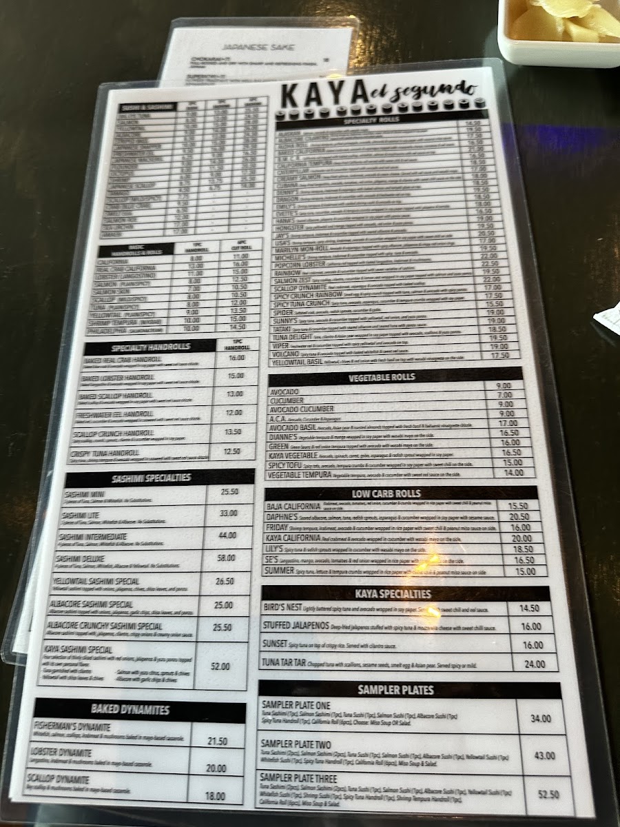 Spicy. Combination of sushi, rolls, tempura, and Korean BBQ in a bento box. 1 piece of tuna sushi, 1 piece of salmon sushi, 1 piece of whitefish sushi, 3 California rolls, salad, imitation crabmeat sunomono, shrimp and vegetable tempura, rice and miso soup.